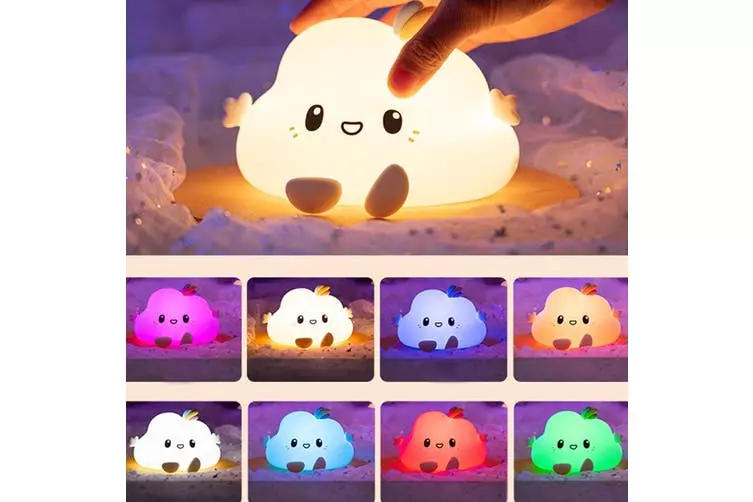Let this cute little cloud guard your bedside with his lovely expression and colorful LED lights. The lamp lights up in 7 different colorful lights. Just tap the lamp and enjoy a warm glow. A great gift for the little monster who is scared to sleep with all the lights off or a birthday gift for a friend who loves all things soft and mushy.