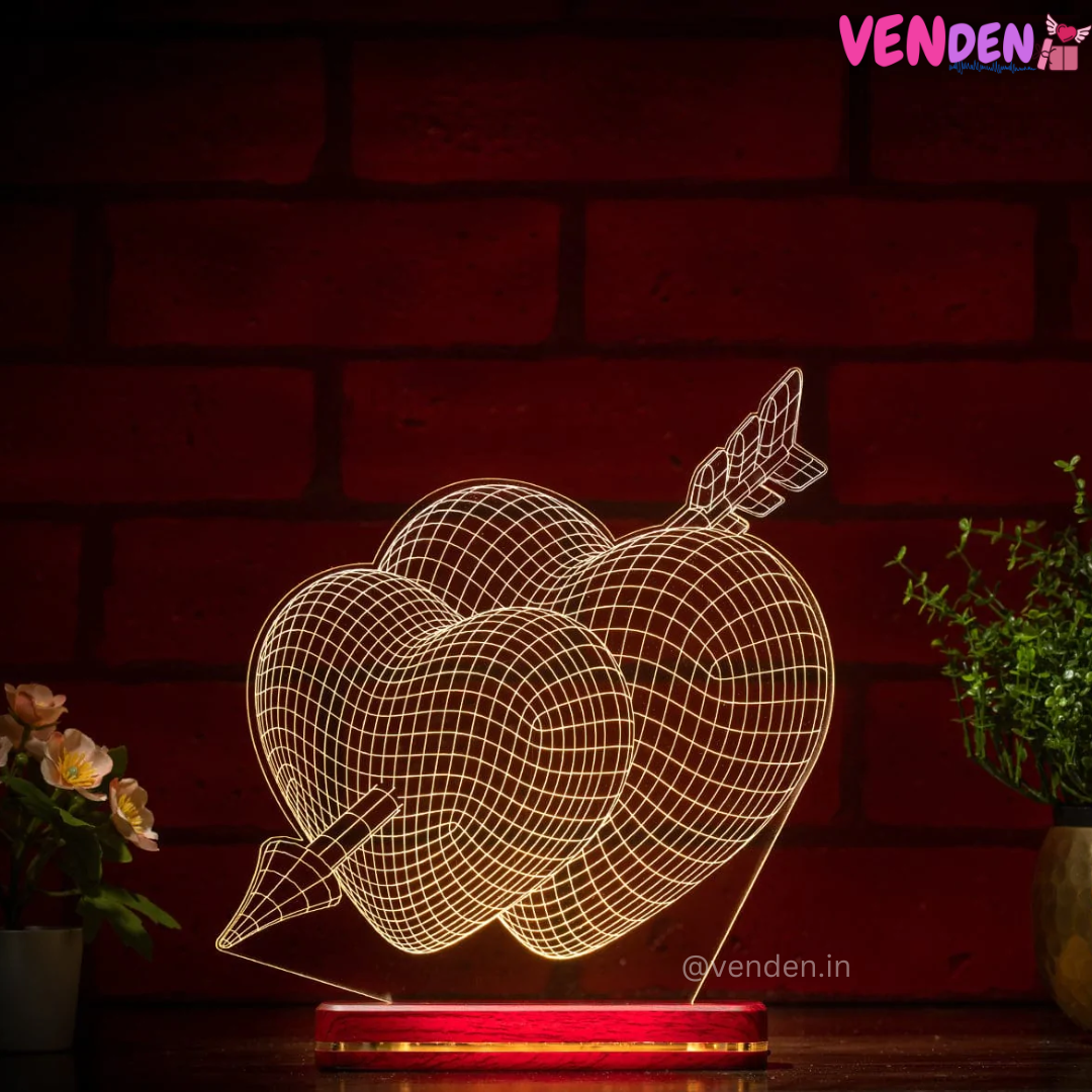 Bring home 3D Illusion Hologram Lamp or get it as a gift for a dear friend and spread joyful vibes all around. Quirkily decked up with a 3D acrylic panel that gives an illusion of an arrow inside two hearts, it makes for quite the perfect gift for friends and family alike. Whether it is a close friend or your family member, they are sure to love this pretty lamp.