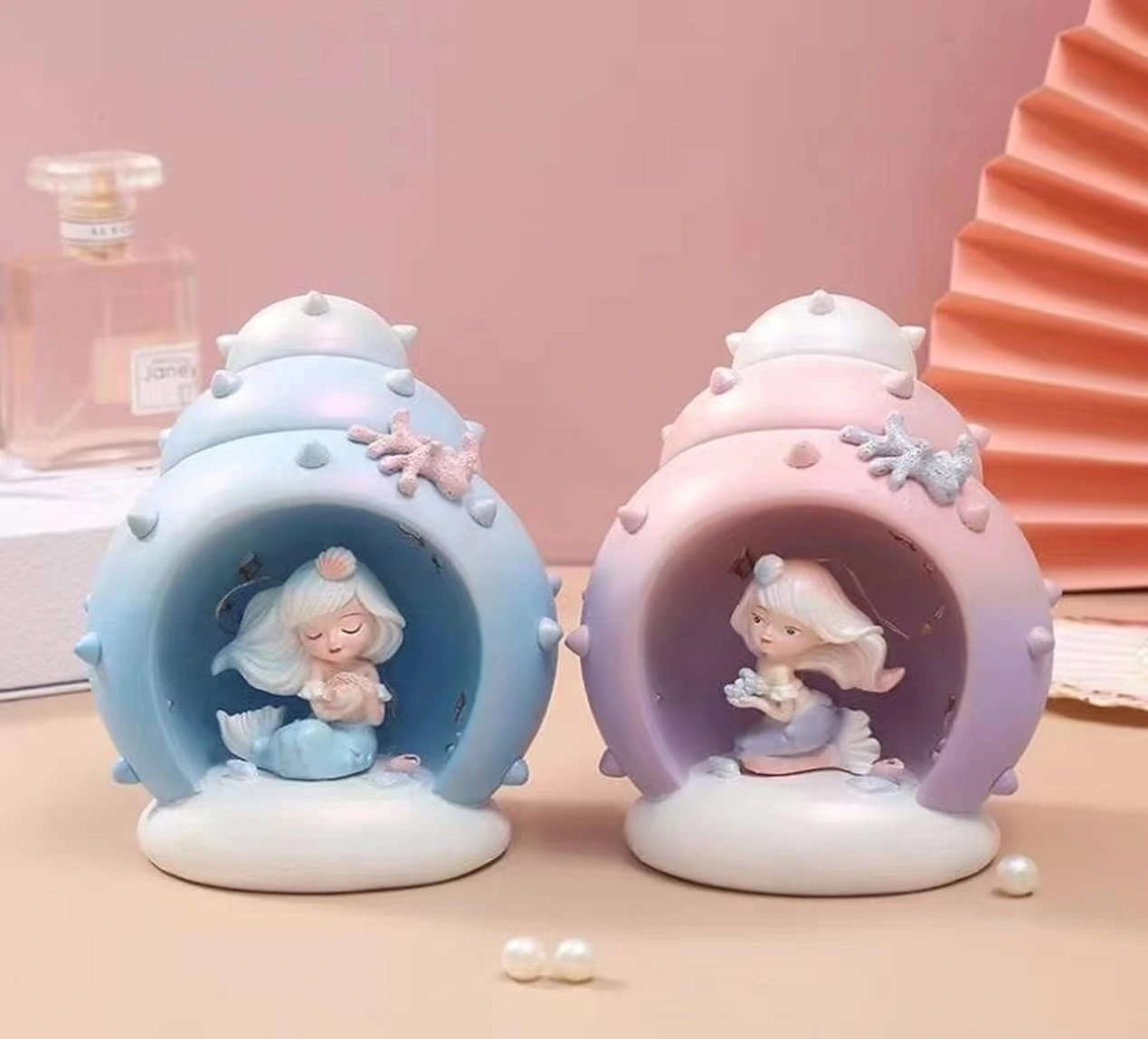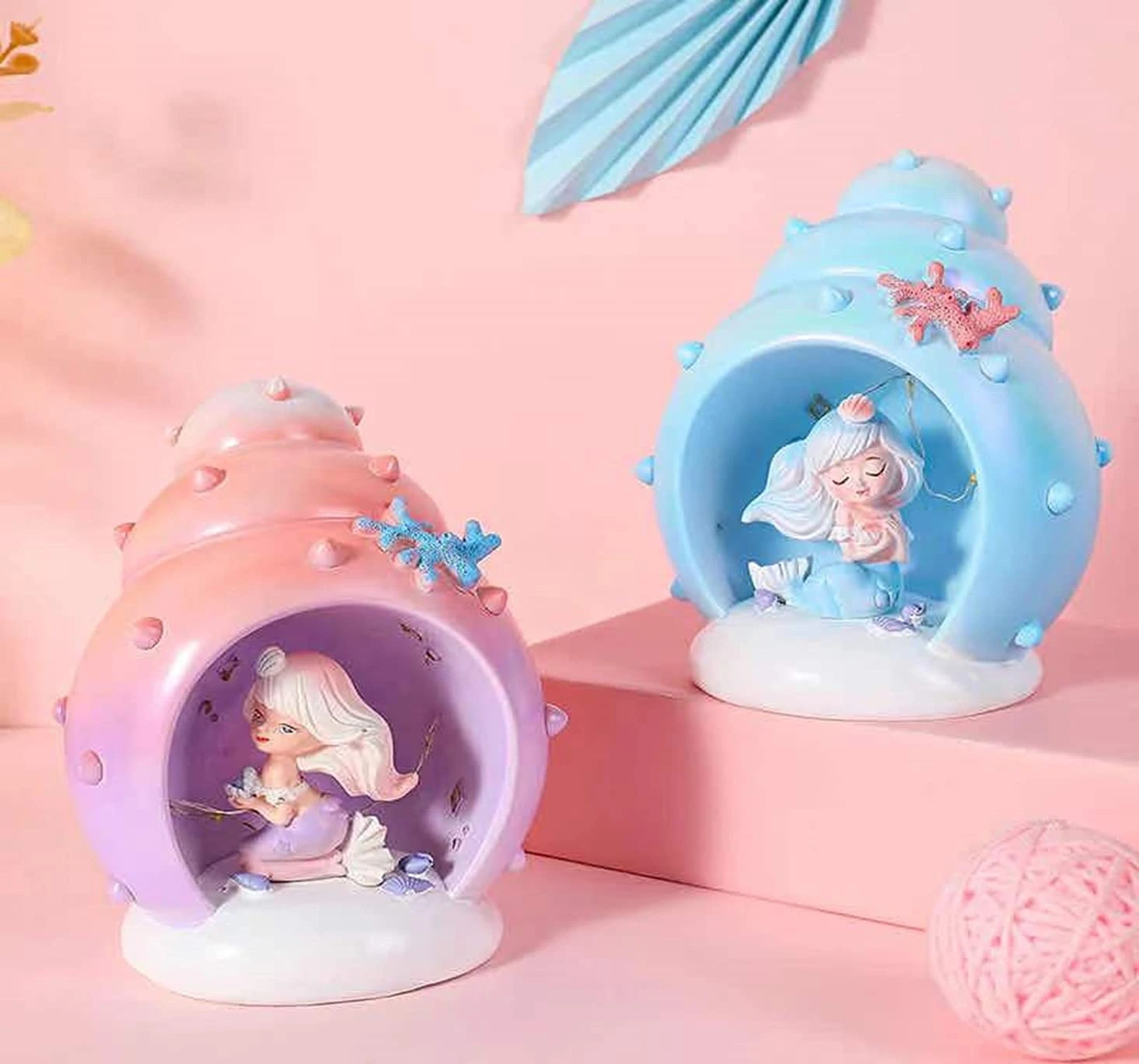+ Special GiftA lamp mermaid just for you! This colourful lamp is all you need to make your room spe-shell. These beautiful lamps are available in 2 colours. This is a resin lamp that runs on battery cells.