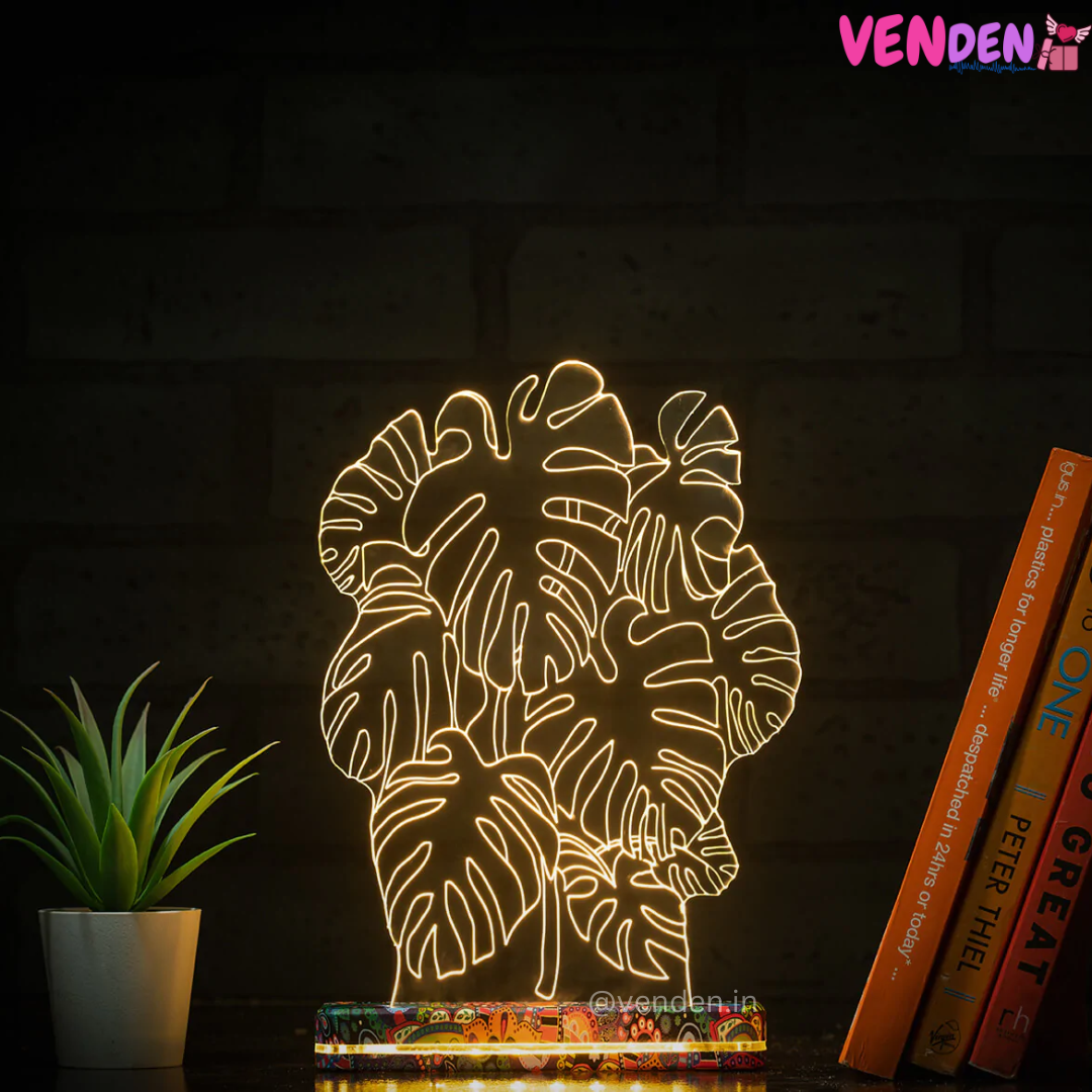 Bring home 3D Illusion Hologram Lamp or get it as a gift for a dear friend and spread joyful vibes all around. Quirkily decked up with a 3D acrylic panel that gives an illusion of Swiss cheese Plant, it makes for quite the perfect gift for friends and family alike. Whether it is a close friend or your family member, they are sure to love this pretty lamp.